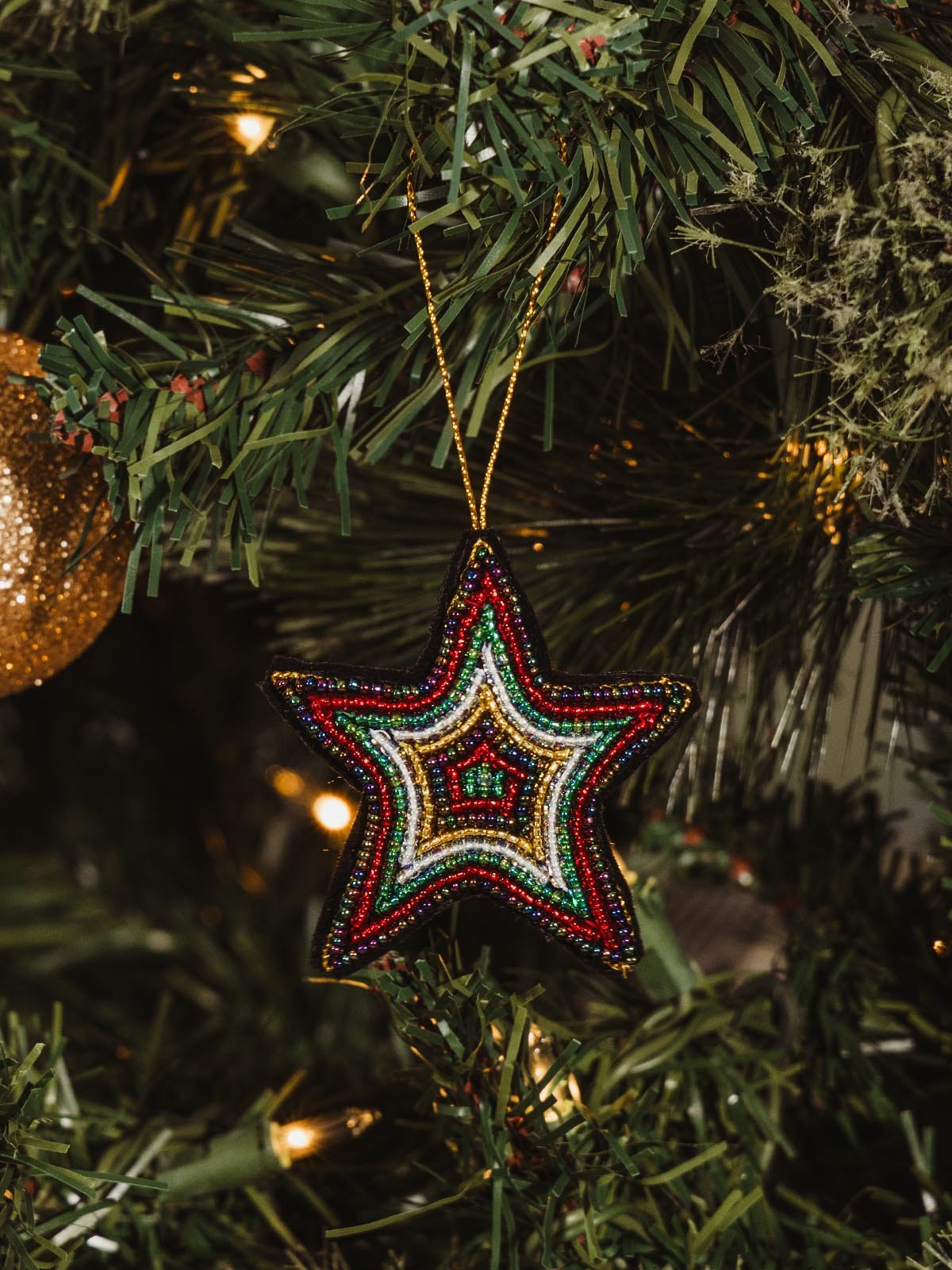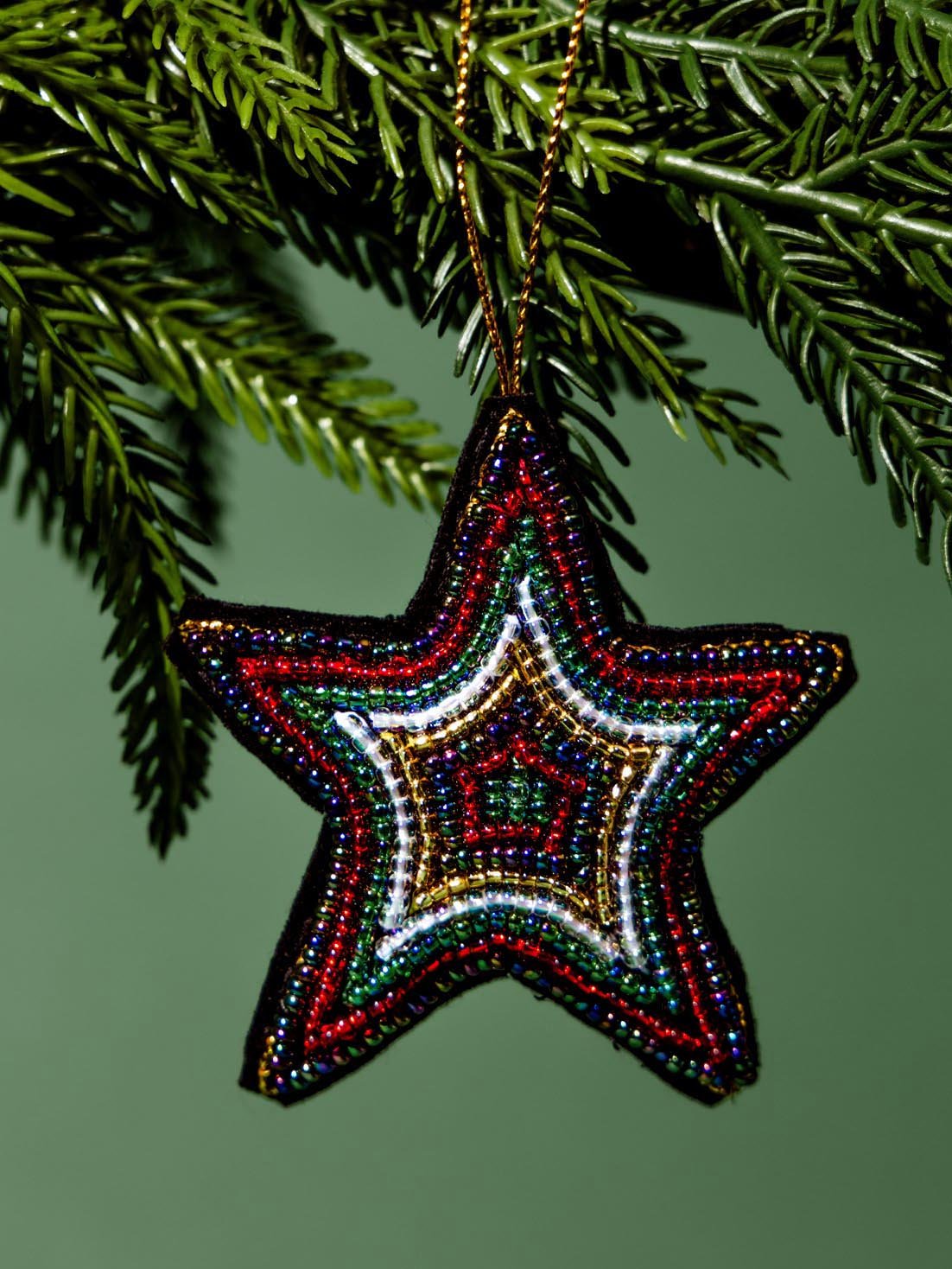 Handcrafted with Swarovski? crystals. silver-plated seed beads. and gold-toned thread. this beaded star ornament is stunning in its simplicity. Each special embellishment is hand-beaded onto soft velveteen cloth for a star that shines bright wherever you hang it.